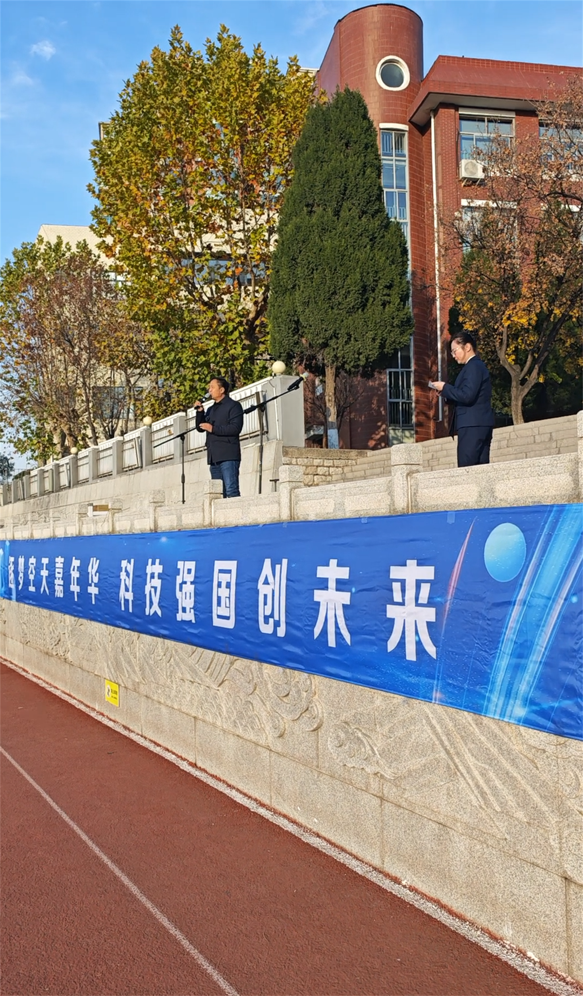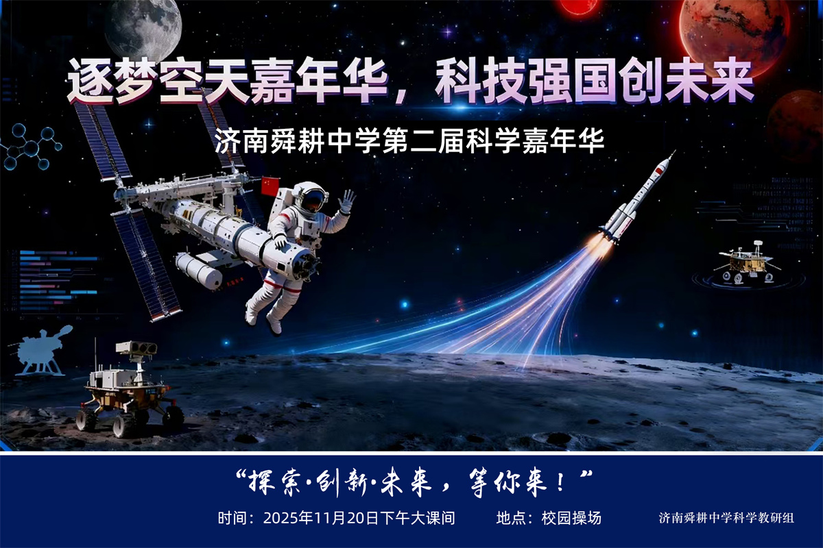 2025年11月20日下午3时20分,济南舜耕中学操场洋溢着蓬勃的科学热情,第二届“逐梦空天”科技嘉年华开幕式在全体师生的期待中拉开帷幕。本届科技嘉年华以“逐梦空天,智创未来”为主题,旨在通过丰富多彩的活动激发学生的科学兴趣,培养创新精神和实践能力。科技嘉年华不仅是一场校园活动,更是响应国家科技自立自强战略、播种科学梦想、培育未来创新人才的具体实践。