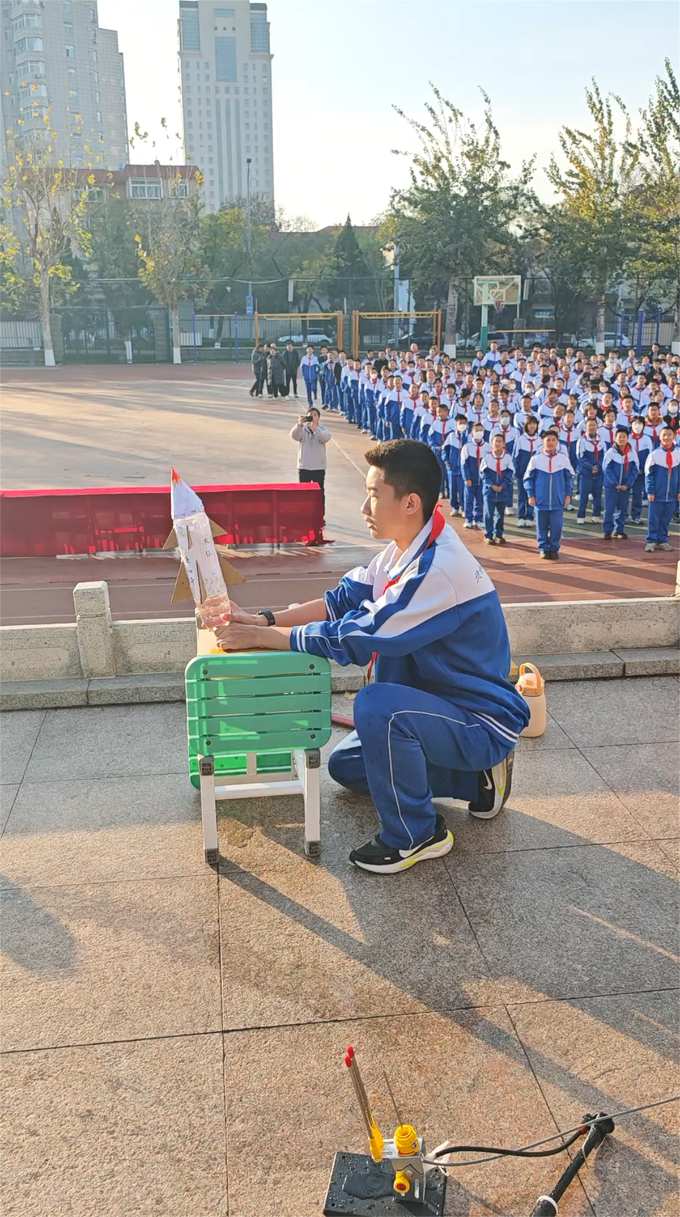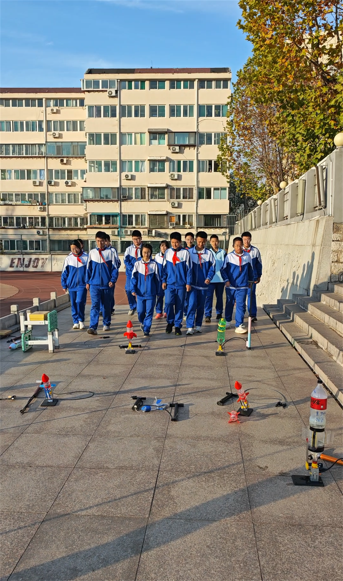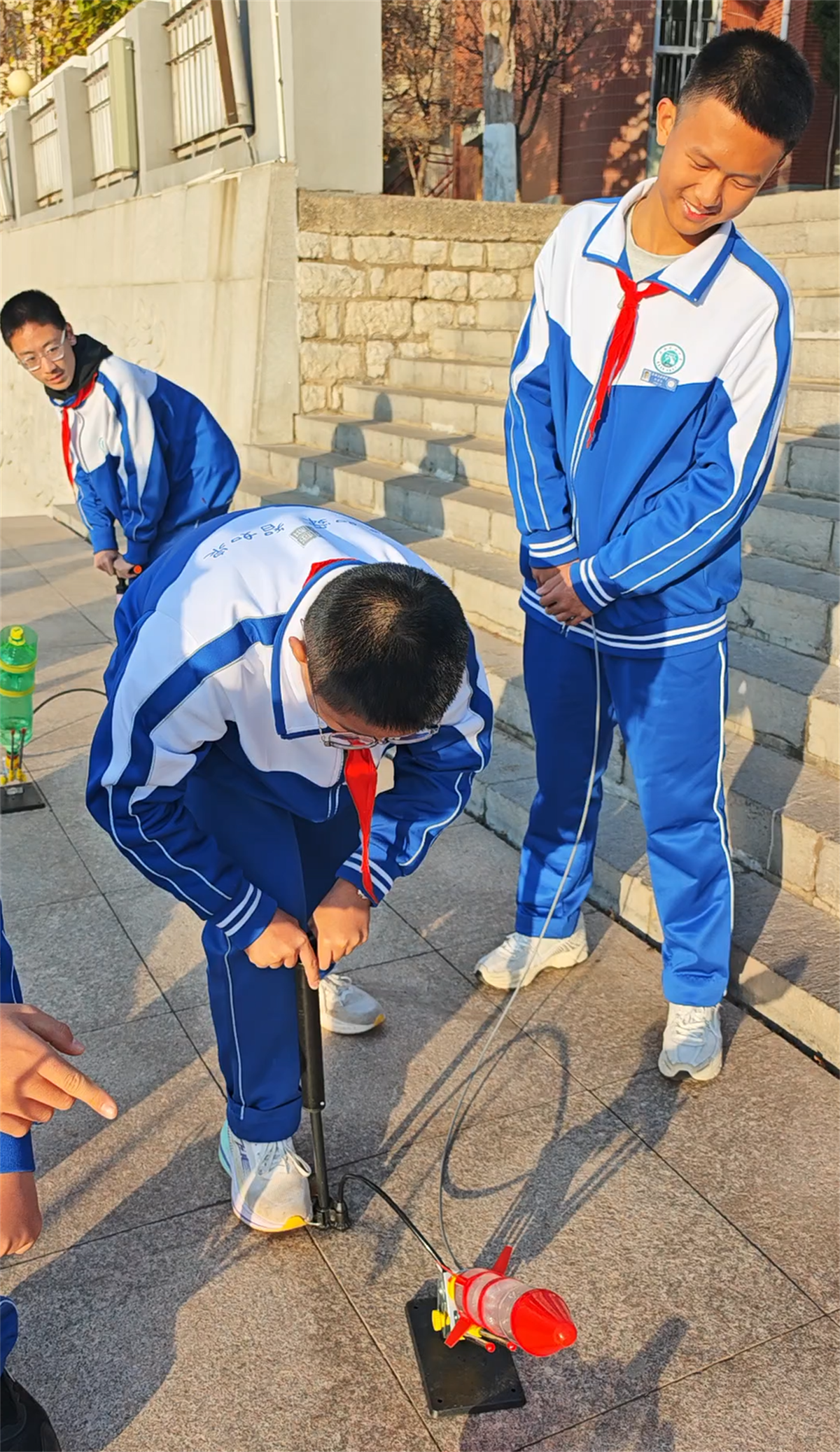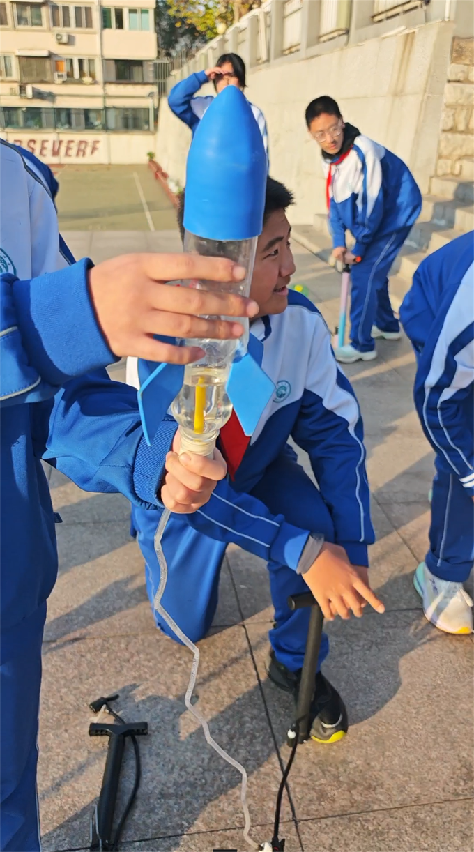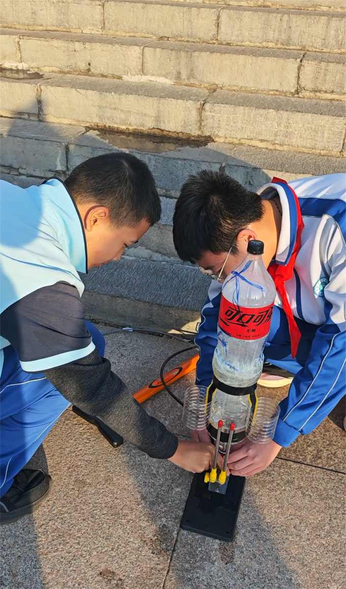 开幕式还特别设置了科技表演环节。无人机编队以精准的飞行和绚丽的舞姿,在操场上空绘就科技画卷;学生自主研发的水火箭腾空而起,展现了科学原理与创新设计的完美结合。李老师倡议初一、初二同学积极借鉴表演灵感,动手制作外形美观、飞行稳定的水火箭,参与后续全校比赛。