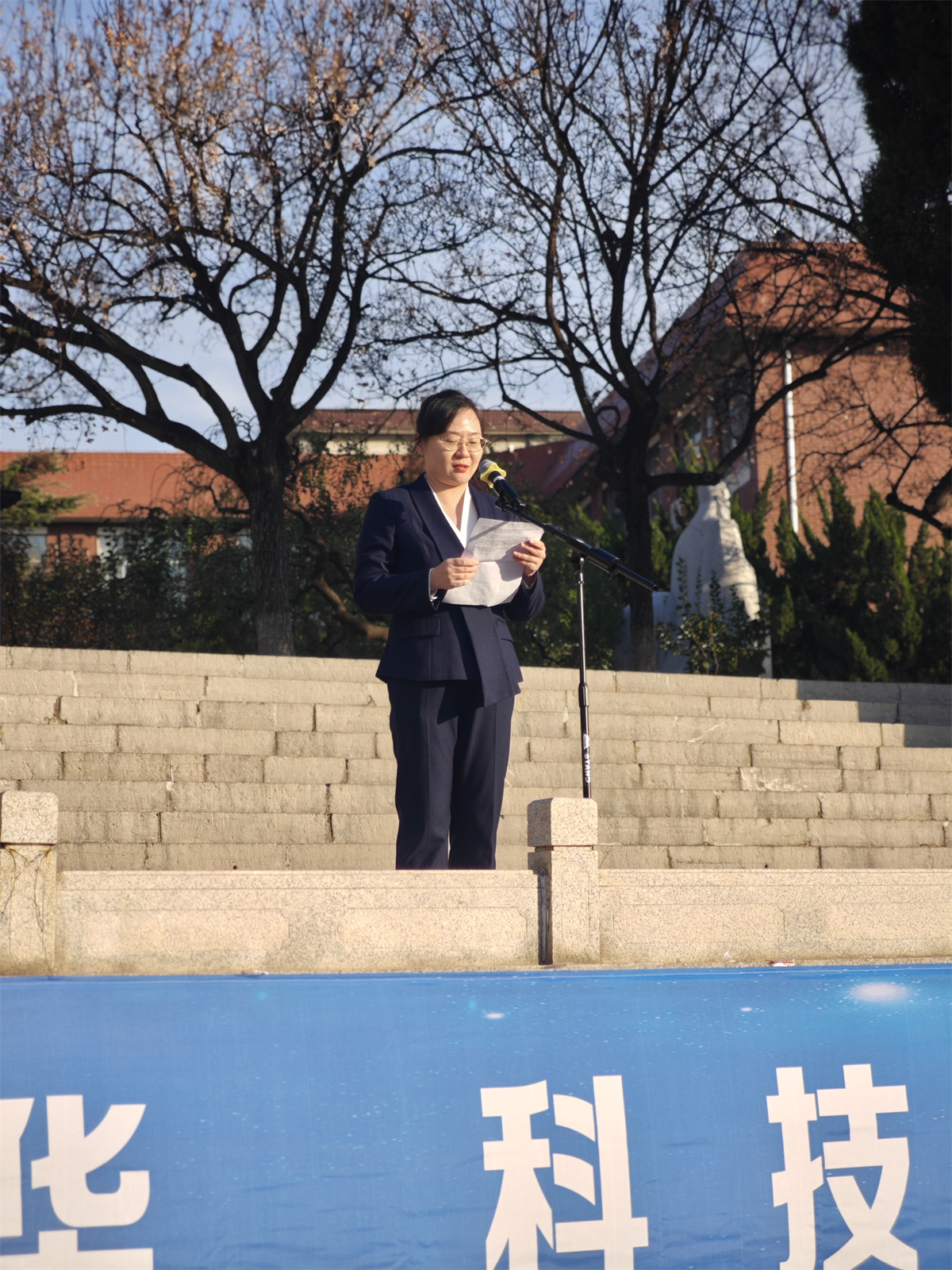 学校党总支副书记、校长杨国营为开幕式致辞。杨校长指出,科学教育、科技教育是培养学生综合素质的重要途径,希望同学们在活动中勇于尝试、敢于创新,充分展现舜耕学子的风采。随后,杨校长庄严宣布:“我宣布,济南舜耕中学第二届‘逐梦空天’科技嘉年华,现在开幕!”全场掌声雷动,将现场气氛推向高潮。