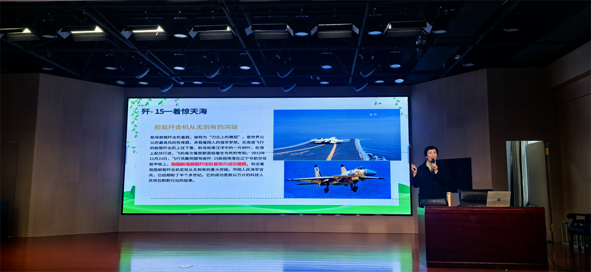 讲座伊始,赵教授以我国歼-15战斗机研发历程为切入点,生动讲述了中国航空工业从设计构想到首飞成功的艰辛突破。她以“从无到有、从0到1”的奋斗故事,展现了我国科技工作者不畏艰难、勇攀高峰的精神风貌,激发了学子们的民族自豪感和科技报国热情。