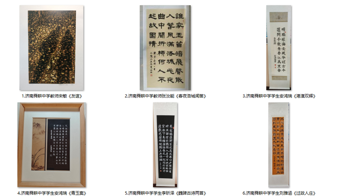 济南舜耕中学高度重视此次活动,由学校办公室统筹协调,美术组精心策划,面向全校师生开展作品征集与遴选工作。最终,经严格评审筛选,共提报 10 件学生作品、2 件教师作品,同时收到友好学校——香港嘉诺撒圣心书院选送的 5 件学生作品。两所学校提报作品主题鲜明,充分展现了两地师生深厚的艺术素养与积极向上的精神风貌,全部成功入围参展。