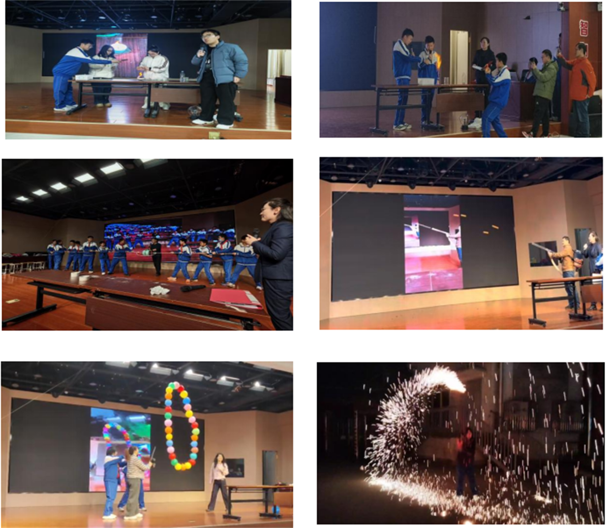 最引人注目的当属由学校科学教师团队带来的科学实验秀。教师们化身“科学魔法师”,“美丽极光与打铁花”、“烧不坏的手帕”、“马德堡半球”、“悬浮彩色气球环”等炫酷实验轮番上演,尤其是压轴的“天地交响·电火流光”环节,将传统“打铁花”的炽热与现代“特斯拉线圈”隔空点灯的奇幻完美结合,用最震撼的方式揭示了电磁感应的奥秘,引发现场阵阵惊呼与雷鸣般的掌声。