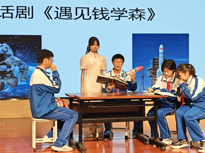 随后,由初二年级学生自编自导自演的科普剧《遇见钱学森》与《逐星者的时光漫游》精彩上演。同学们用生动的表演,架起了与科学先贤对话的桥梁,畅想了未来深空探索的无限可能,展现了舜耕学子出色的综合素养与人文情怀。