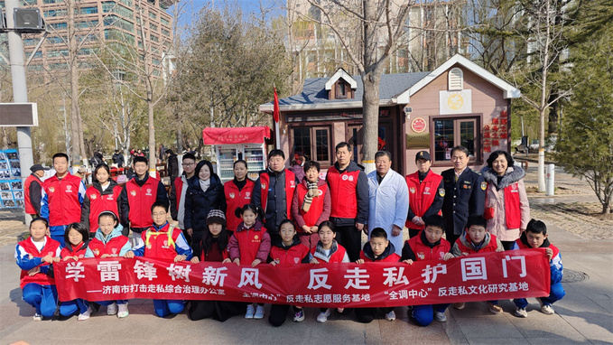 2026年3月7日上午,泉城广场上春意盎然,一抹抹跃动的“志愿红”格外引人注目。来自济南舜耕中学初一年级的同学们,在老师的带领下,参加了由济南市口岸和物流办公室、济南市打击走私综合治理办公室联合“全调中心”反走私志愿服务基地、研究基地举办的“学雷锋树新风 反走私护国门”主题宣传活动。