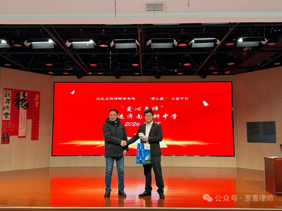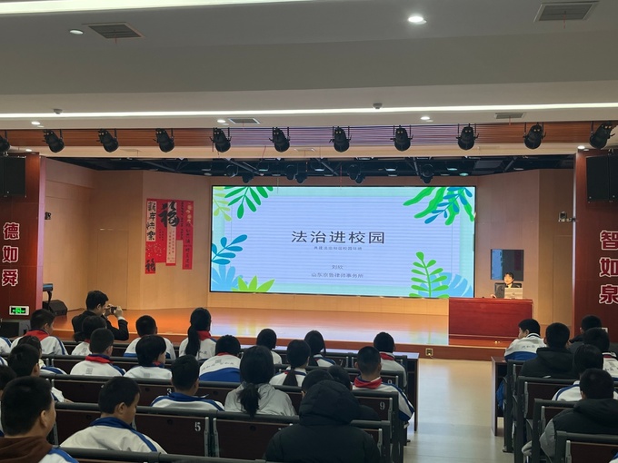 济南舜耕中学校长杨国营、副校长邢庆福、学生发展部主任杨坤峰及京鲁律所代表等共同参与了本次活动。