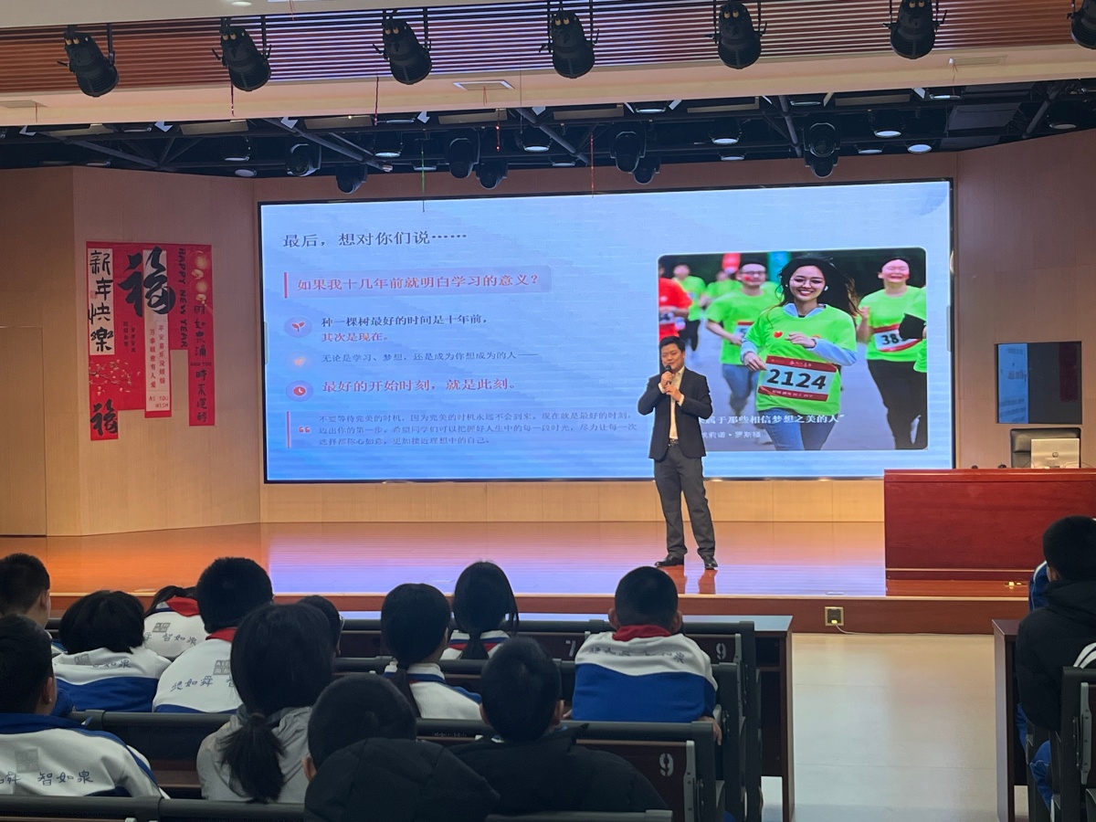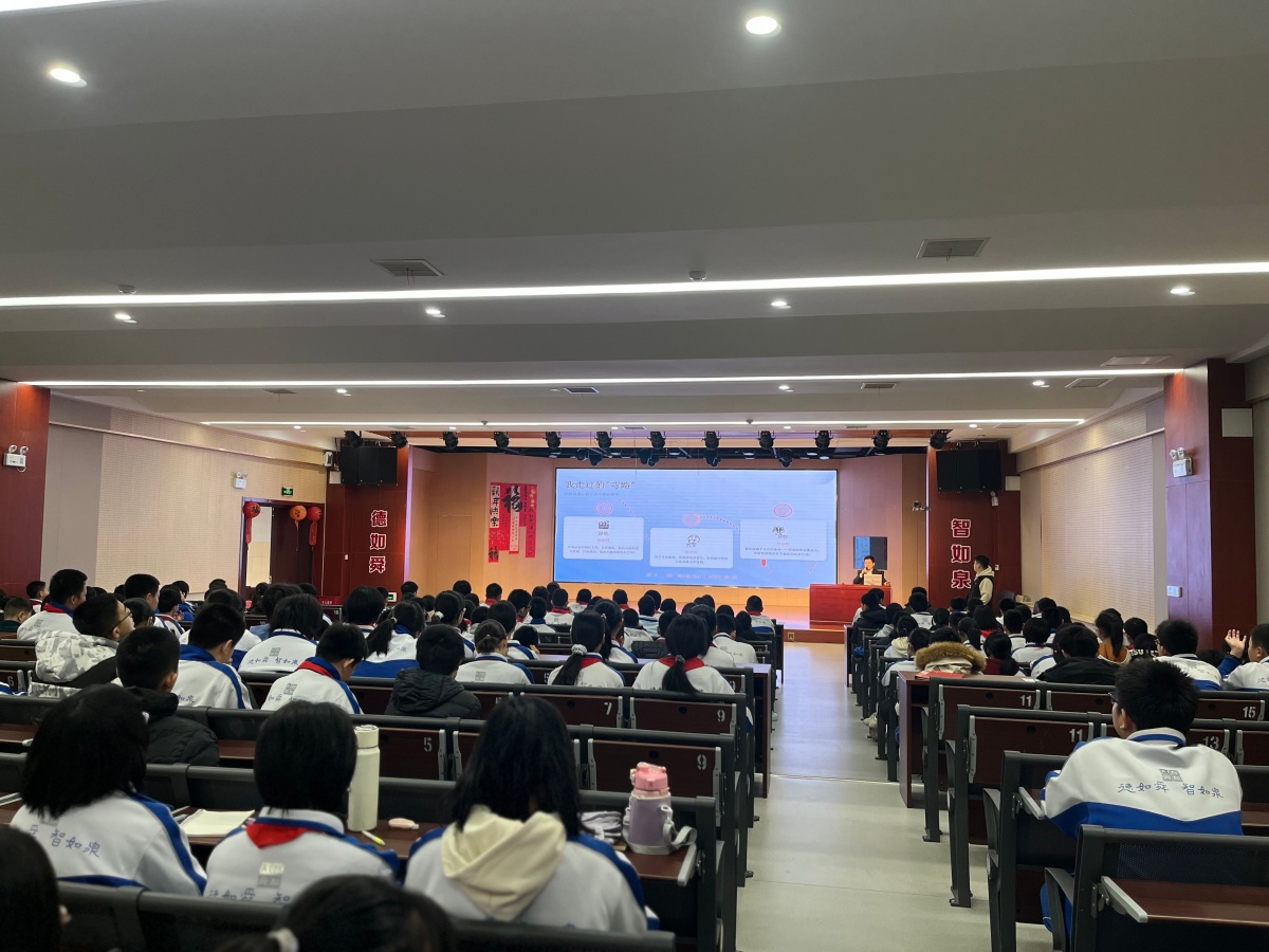 适逢寒假前夕,学校以此为契机,特别为初一、初二年级全体学生组织了两场以“成长赋能”与“法治护航”为主题的双重教育课堂,旨在引导学生以积极心态迎接假期,并以法律规范守护自身成长。