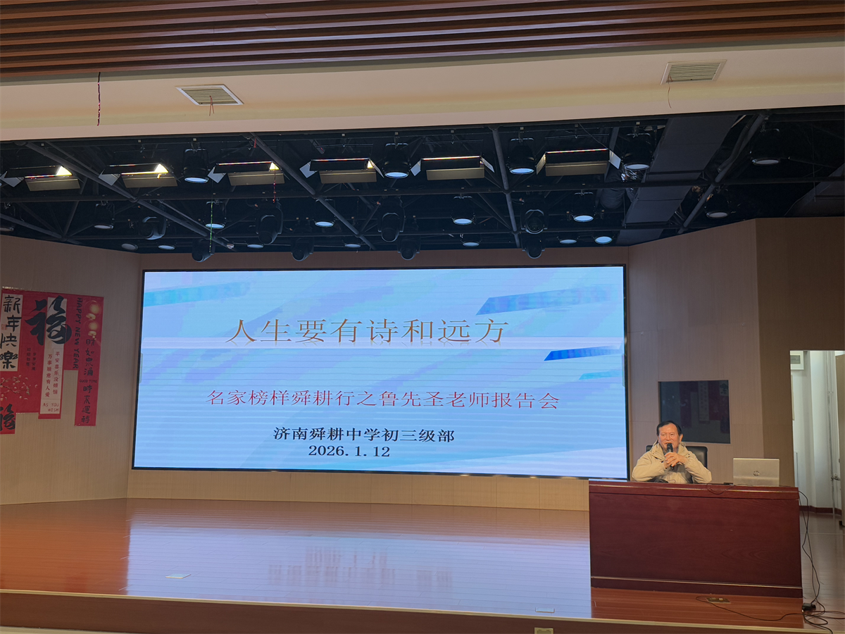 此次报告会不仅让舜耕中学初三学子近距离感受到名家风采,更在他们心中播下了热爱文学、追逐梦想的种子。济南舜耕中学始终重视学生的全面发展与精神成长,后续将持续开展“名家榜样进校园”活动,为学生搭建拓宽视野、滋养心灵的平台,助力学子以更饱满的状态、更坚定的信念迎接学考,奔赴属于自己的“诗和远方”。