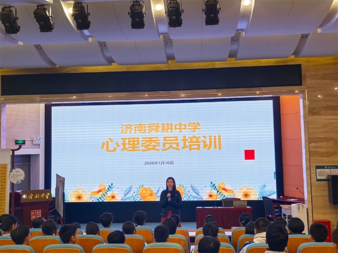 为深入推进学校心理健康教育工作,构建更加温暖、互助的朋辈支持网络,济南舜耕中学于2026年1月16日下午,在学校报告厅开展了心理委员培训。来自三个年级各班的心理委员齐聚一堂,共同学习、充电,肩负起班级“心灵使者”的重要职责。