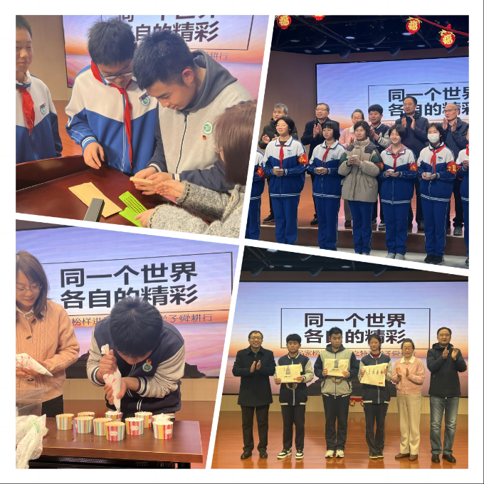演讲结束后,三位同学还展示了自己的才艺,张瑞亲手制作美味的蛋糕、曲家瑄带来精彩舞蹈视频、孙浩现场用盲文刻下姓名送给同学,在场的老师同学们一起享受他们成功的喜悦。同时,三位同学也收到了舜耕中学精心准备的礼物。
