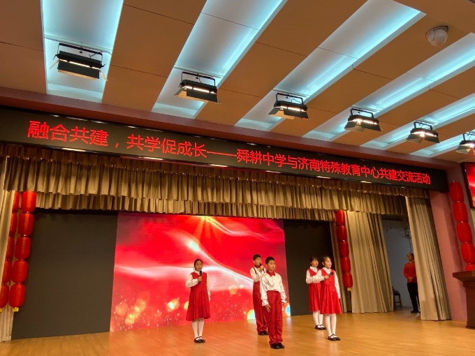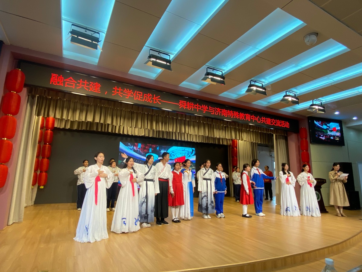 活动当天,济南舜耕中学初一初二年级的部分学生代表来到了济南特殊教育中心。济南舜耕中学校长杨国营、党总支书记韩坤、济南特殊教育中心校长于生丹、党总支书记薛庆师参加了本次活动。