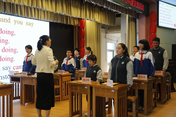 开幕式后,济南舜耕中学的同学们与济南特殊教育中心的同学们共同上了一节英语课,课堂上双方学生积极互动,共同完成了学习任务。