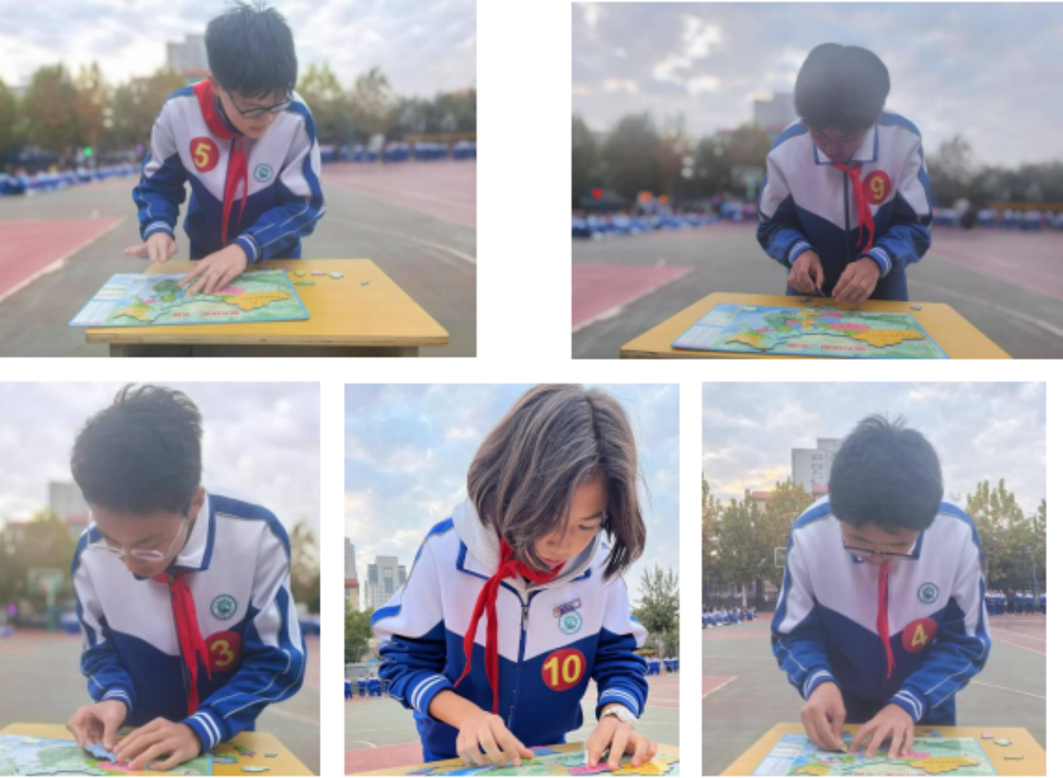 2024年11月8日下午,济南舜耕中学初二全体学生相聚在操场,初二学生代表张梓茉担任比赛主持人,初二每班派出十名学生参赛,准确地将中国三十四个省级行政区拼图放到相应位置,十名选手拼图接力后通过计时方式决胜出名次。